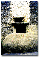 As it turned out, the Dagda and his palace at Bru na Boinne (Newgrange) near Dublin was the factual ground zero for that reality. Estimated to be older than the Pyramids at 5,500 years old, the Bru or the Palace of Angus (son of the Dagda) was to the ancient inhabitants of Ireland, a passageway to another dimension. Yet to the Dagda and his son, it was also a place from where the living of this world could commune with the spirit of the other for all time. |